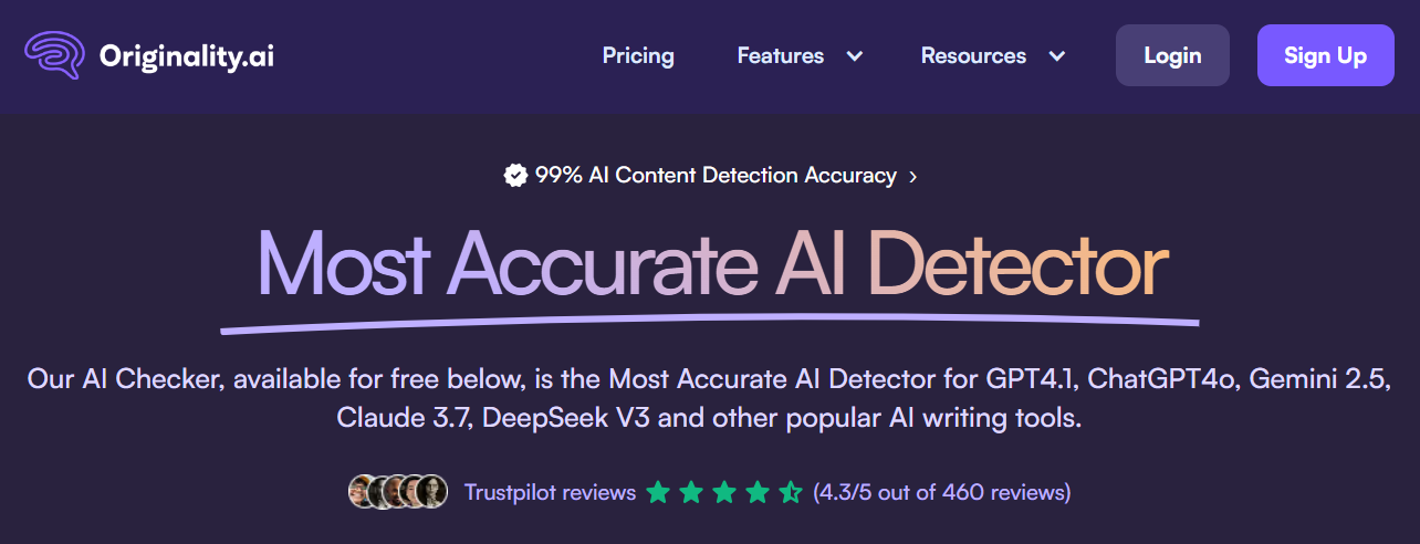 Originality.ai is a leading AI content detector with 99% accuracy for GPT-4 and ChatGPT models. It combines AI detection, plagiarism checking, readability, and fact-checking into one platform. Supports 15 languages, offers sentence-level highlighting, team management, and API access. Plans start at $14.95/month or $30 pay-as-you-go.