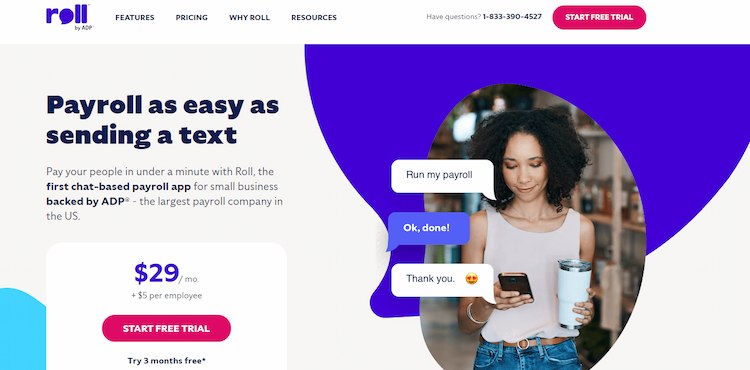 Payroll with this payroll software is as easy as sending a text. It is backed by ADP, the largest payroll company in America. It was the first chat-based payroll system.