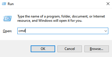 Step 1: Press Windows + R, type “cmd” and hit the Enter key to open Command Prompt.