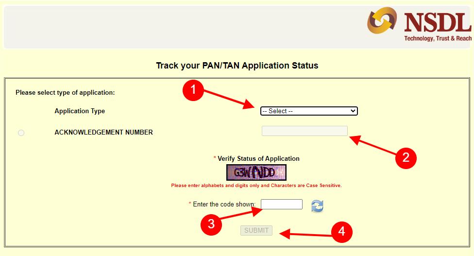 - Open – https://tin.tin.nsdl.com/pantan/StatusTrack.html