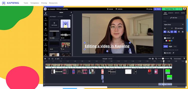 Kapwing is a free video editor on the internet. It allows you to edit videos and add text, titles, music, and other effects. Kapwing also has templates for weddings and corporate events that can be used without any customization needed. The program also allows you to export your project as a video or upload it directly to Youtube or Facebook.